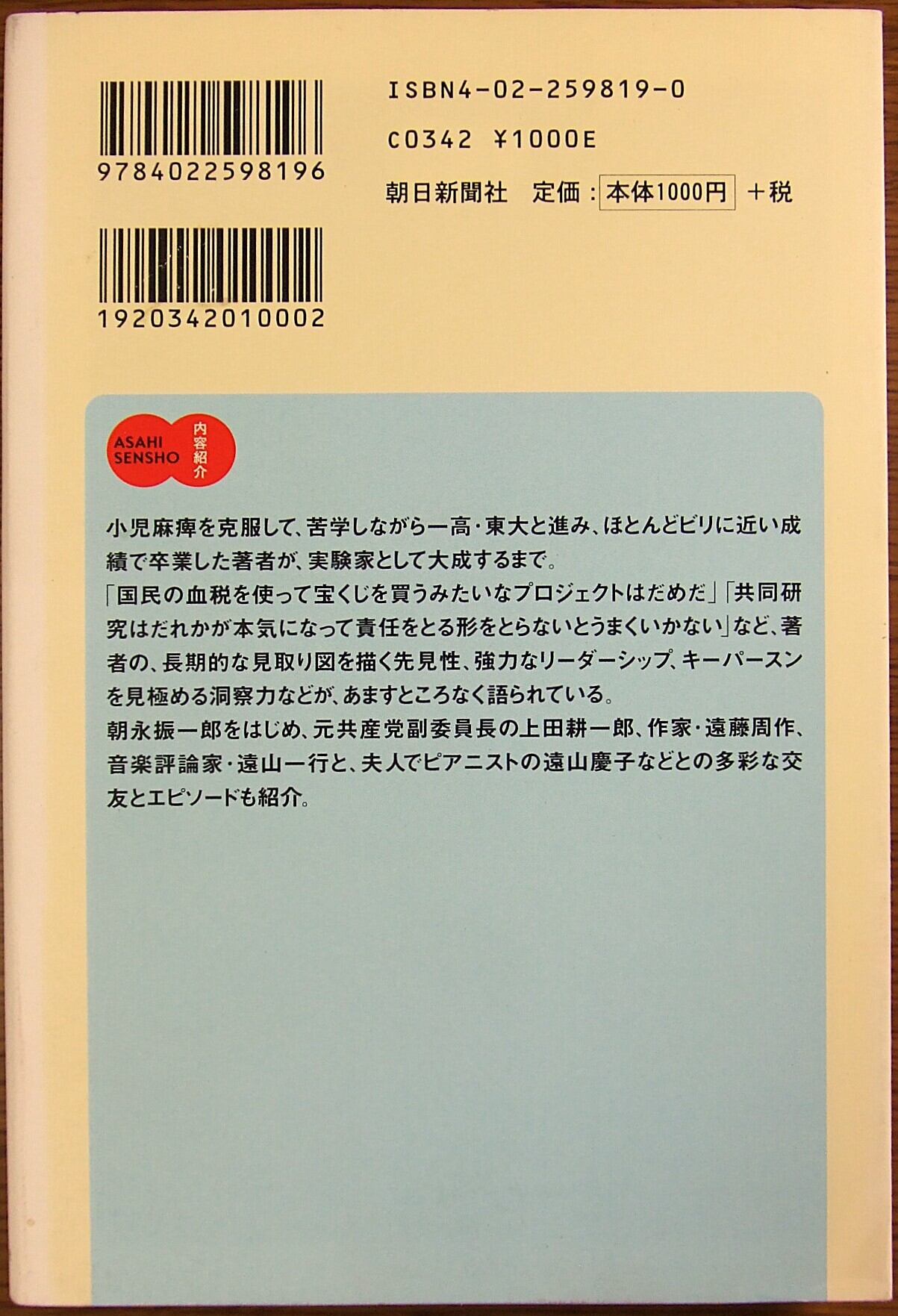 ノーベル物理学賞受賞者・小柴昌俊の自伝的エッセイ。