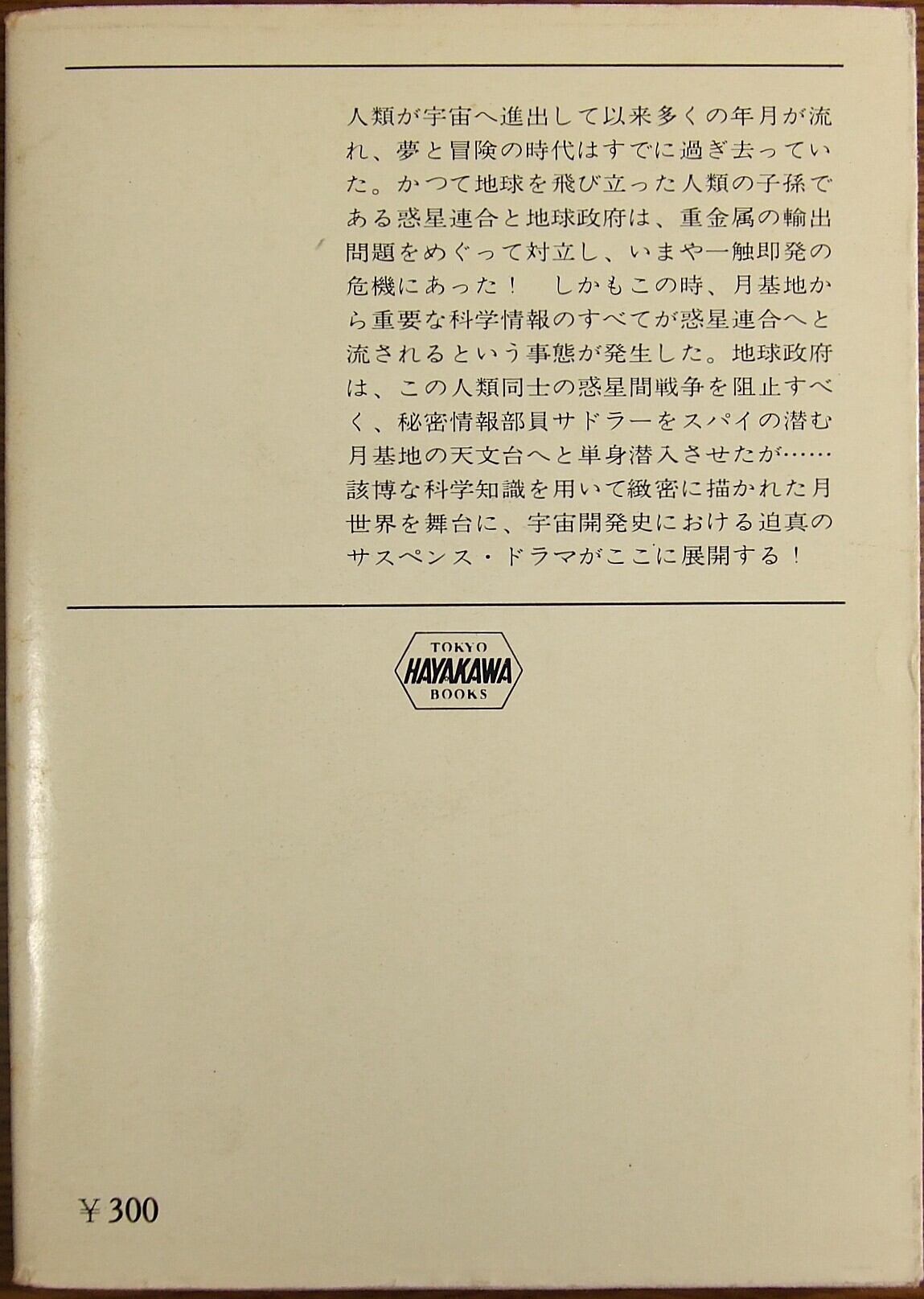 月面基地を舞台に、地球と外惑星連合の緊張が高まる中、天文学者バートンは思いもよらぬ政治と科学の渦に巻き込まれていく。