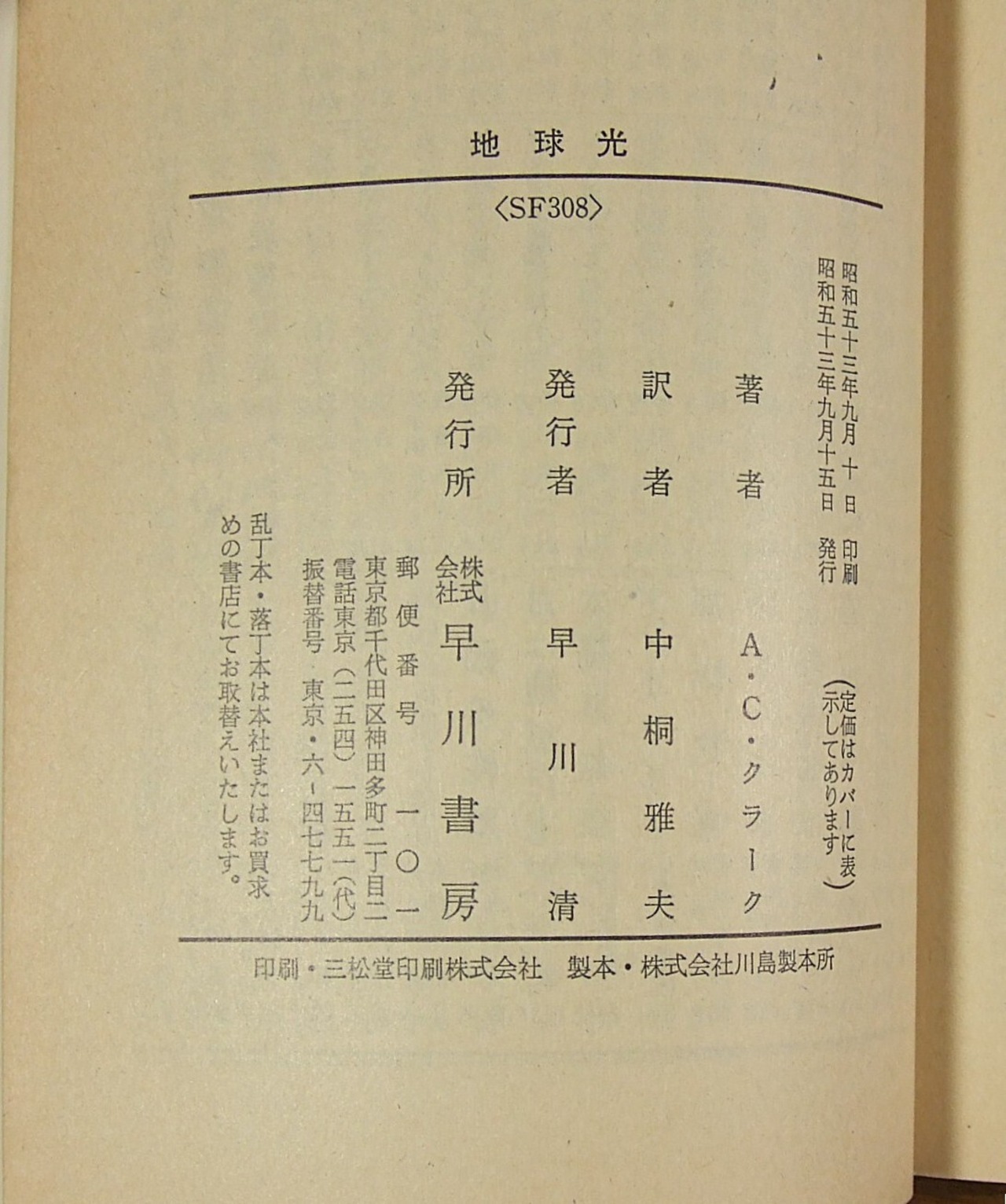 発行所 早川書房