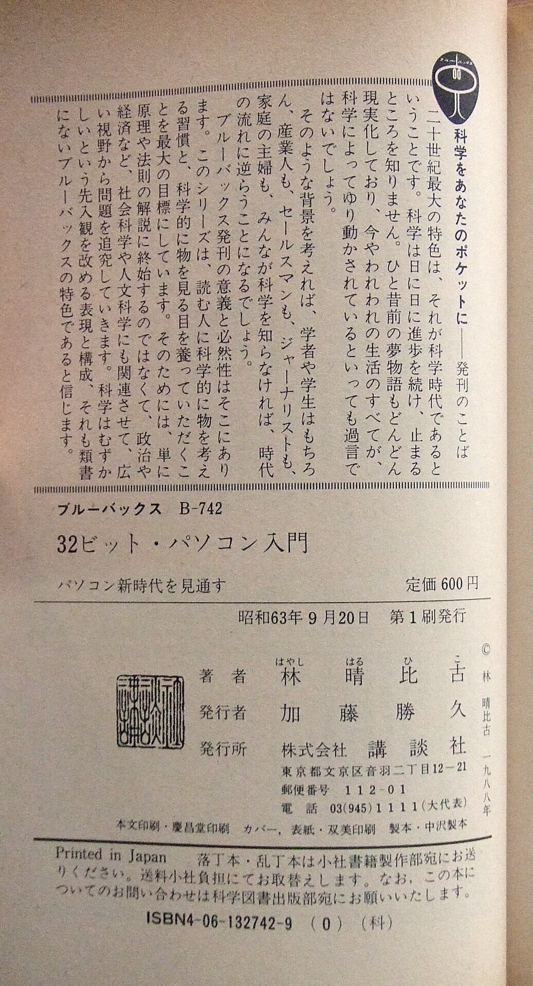 32ビットマシンの登場によって、パソコンは「かつてのミニコンを凌ぐ」能力を持つようになった。この強力パワーはパソコンの世界をどう変えていくのだろう? 具体的には何がどう便利になるのか? 一般ユーザーにとって、16ビット・パソコンと32ビット・パソコンのどっちが得なのか? ハードウェアだけでなく、OS、プログラミング言語などのソフトウェアを含めて、16ビット時代から32ビット時代へのパソコン環境の変化を、初心者にもナットクできるコトバで解説した入門書。(カバーより)