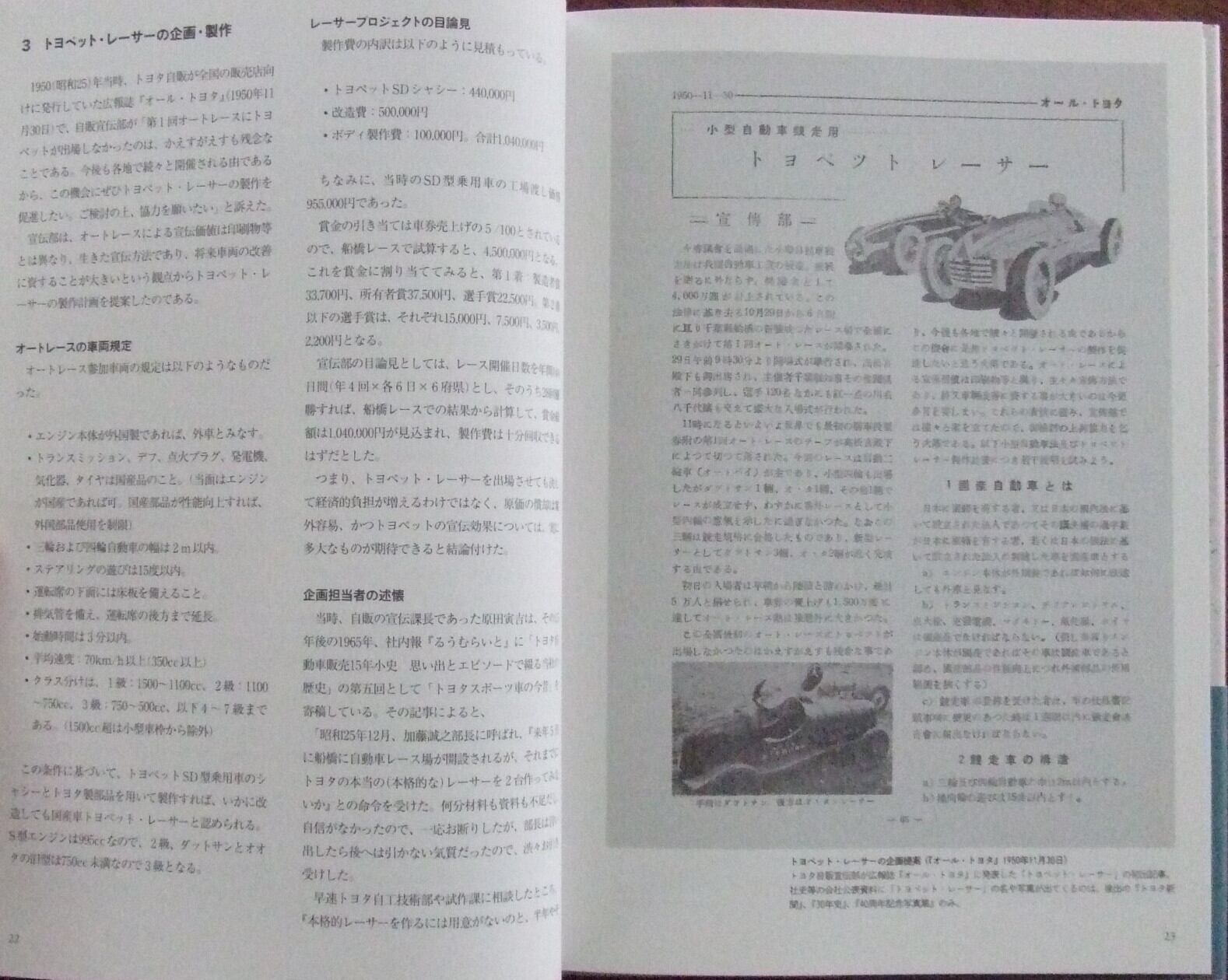 トヨタモータースポーツの昭和20年代から30年代にかけての活動をまとめた本です。トヨタモータースポーツの黎明期を綴った歴史書。